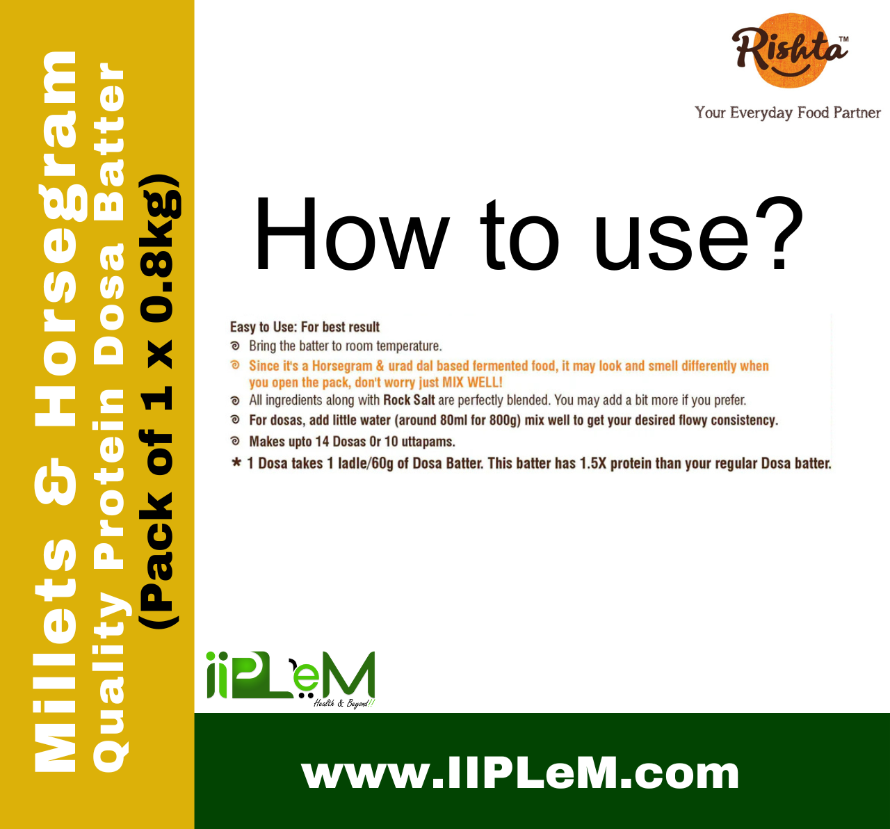 - This plant-based batter delivers 10 g of plant-protein in 3 crispy dosas, supporting an active lifestyle.